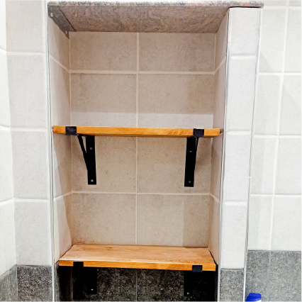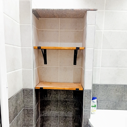 L’étagère est fixée au mur à l’aide de supports en fer plat noir, apportant une touche industrielle et contemporaine qui contraste harmonieusement avec la chaleur naturelle du bois. Ces supports en métal plat assurent une fixation sécurisée, offrant une stabilité maximale et permettant de supporter des charges plus lourdes sans risque. Leur design minimaliste et élégant s’intègre parfaitement dans tout type de décor, que ce soit dans un salon, une chambre, un bureau ou même un hall d’entrée.