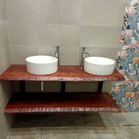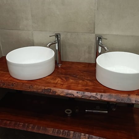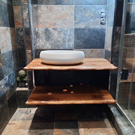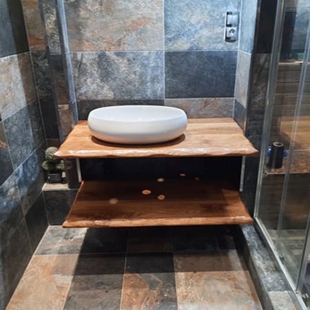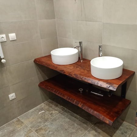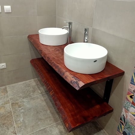 Élevez votre salle de bain avec le luxueux meuble Live Edge de Plan de Vasque. Fabriqué en bois massif durable en Algérie, ce meuble unique combine style et fonctionnalité pour une addition étonnante à votre espace.
