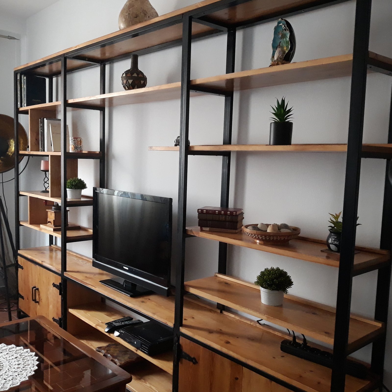 Avec nos meubles au design soigné, nous élevons notre conception à un tout autre niveau – et nous sommes impatients que vous en fassiez l’expérience ! Cette bibliothèque industrielle est bien plus qu’un simple emplacement pour votre télévision.