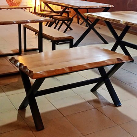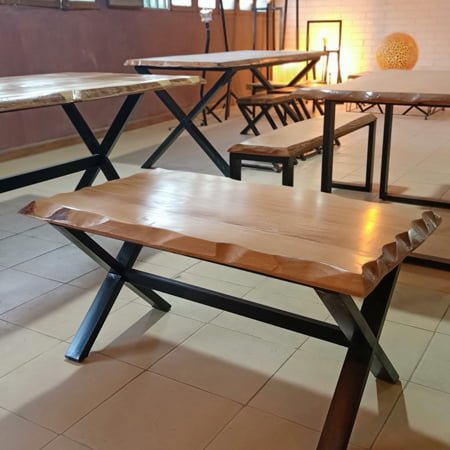 Trouvez la table basse parfaite pour votre salon avec notre table basse rectangulaire en bois massif de couleur naturelle. La structure métallique en forme de X ajoute une touche industrielle. Parfaite pour ceux qui aiment le mariage du bois et du métal.fabriquée en Algerie dans nos ateliers